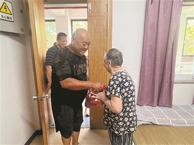 “阿婆,今年的梨子更甜啦,慢慢吃!”陆金俯身递上蜜梨时,笑容温暖。当经过闭着门的房间,他立刻示意大家放轻脚步,将红袋轻轻放在门外凳子上,唯恐惊扰了老人的安眠。这份无需言语的体贴,恰似蜜梨的滋味,悄然浸润人心。
