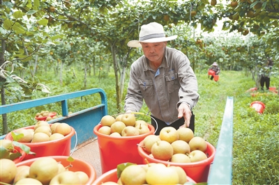 正值海宁蜜梨成熟上市的季节,果农们赶在台风“竹节草”到来前,抓紧时间抢收成熟的蜜梨。