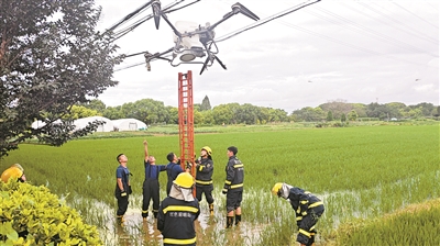 本报讯 近日,长安镇专职消防队接到群众报警:辖区内一农用无人机因操作不当不慎挂在了电线上,严重威胁到周边居民的安全,请求开展紧急除险救援。
