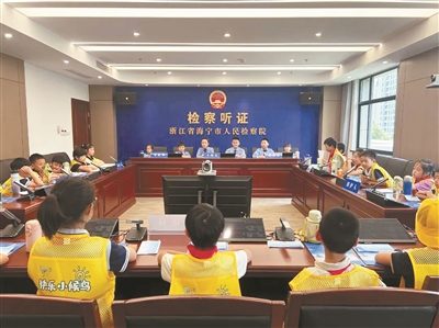 同一天, 经济开发区(海昌街道)总工会联合双联社区、时尚产业工业社区开展的暑托班,把课堂搬进了海宁市人民检察院,孩子们穿上缩小版法袍,有模有样地扮演起了法官、检察官和辩护人。