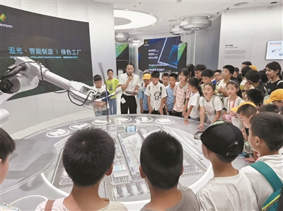 当传统艺术滋养心灵时,科技探索正点燃孩子们的好奇心。AGV物流小车沿磁轨精准穿梭,机械臂在无尘车间快速抓取硅片……7月16日,黄湾镇120余名“小候鸟”走进正泰新能海宁基地,体验一场沉浸式光伏科技探索之旅。据悉,这是黄湾镇总工会提前与正泰新能沟通,结合孩子的认知特点定制的专属学习路线。