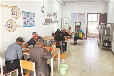老人正在助餐点就餐。