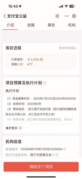 线上捐款截图。
