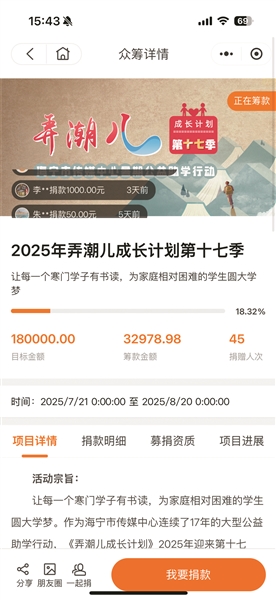 自7月22日第十七季“弄潮儿成长计划”启航以来,一股强劲的慈善暖流迅速席卷潮城,为那些在困境中奋力搏击的“弄潮儿”们传递了希望的曙光与温暖的力量。截至7月30日下午3点,已有超过500位爱心人士慷慨相助,汇聚的爱心善款总额突破4万元。