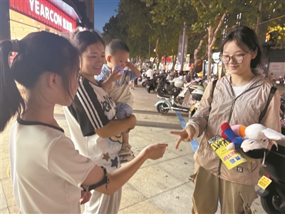 海宁市王国维小学教育集团的学生通过游戏邀路人参与送清凉。