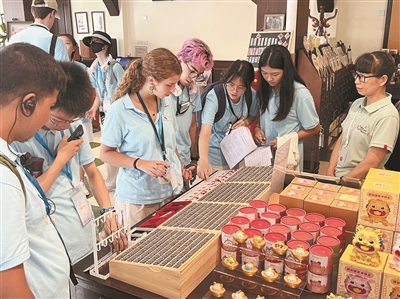 当天上午,来自日本、匈牙利、澳大利亚、洪都拉斯、哥伦比亚、布基纳法索等20个国家的126名师生抵达“盐官古城·潮乐之城”。在指导教师的带领下,由8位同学组成的英语社学生志愿者,热情地接待了他们,用英语向各国师生表示欢迎。在互致问候后,各国师生加入了“增进相互理解,传播跨国友谊”的文化体验活动中。