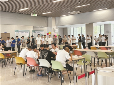 “今年5月底装修完毕,我们就抓紧购买设备、调试等,终于赶在8月1日正式营业。”浙江钱塘江投资开发有限公司资产运营部副部长姚晨炜介绍,从员工“吃饭难”到“吃得好、吃得安心”,看似一餐一饭的小事,却关乎人才留驻与生活品质。有了食堂,才可以卸下企业后勤保障的负担,帮助企业留住人才。