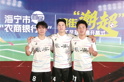 本报讯 在海宁市首届“农商银行杯”镇街“潮超”足球联赛上,长安三兄弟齐上阵,相似的长相,相似的身高。球场上配合默契、跑动积极,他们是张思贤、张涛、张思逸。