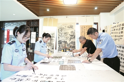 本报讯 在许村镇许村派出所二楼,一间100多平方米的书画工作室里,常常能看到这样的画面:午休时间,身着警服的民警们围站在桌前,或提笔临摹,或交流笔法,而站在中间耐心指导的正是工作室的创始人——陈小奇。
