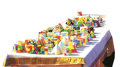 挑战结束后,黄周洋依然兴致勃勃地研究着桌上的各种魔方。他认真地向记者解释:“这90种魔方的难度各不相同,比如齿轮球形魔方就特别具有挑战性,所以我平时会重点练习这类魔方。”