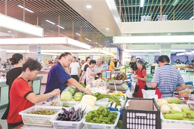 新市场内设有标准化摊位48个,涵盖蔬菜、水产、肉类、豆制品、冷冻、熟食等多个品类,还设置两个自产自销区,充分满足居民一站式购物需求。市场排污系统、消防设施等配备完善,并设置了公平秤、母婴区、休息区等便民服务设施,以及食品安全检测室,为市民群众营造更为安全、舒适、便捷的购物环境。