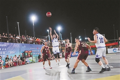 近日,在经过一个月的激烈角逐后,“运动袁花·当篮有我”袁花镇首届“金彩杯”“村BA”四强出炉,分别是泓策佳业队、双丰村队、红新村队、红晓村队。据悉,此次比赛吸引了来自全镇各村社、企事业单位的19支球队、200多名篮球高手参加。图为比赛现场。 ■记者 杨立超 摄