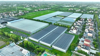 周王庙镇博儒桥村创新探索“四共四筹”,奏响干群同心的和谐乐章。图片分别为共富大棚、农业直播中心、美邻公园。