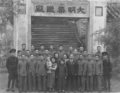 查济民(第一排右五)一家与大明染织公司员工合照。(1941年摄)