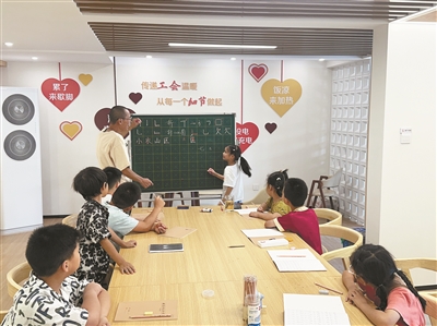 今年,洛溪社区聚焦居民高频需求,还发布了“达人招募令”,挖掘编织、舞蹈、书法和太极等能人。退休教师蒋平华就是其中一位,他原先在杭州钱塘区青少年宫执教书法,退休后定居洛溪社区。这个暑期,他每周都会来爱心教室免费教孩子写书法。“我们想给蒋老师一点补贴,他说啥也不要,就说‘住在这,就该为社区出份力’。”冯剑萍称赞道。