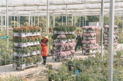 如今,12个行政村打破行政壁垒,培育形成花卉、稻米、果蔬3大亿元产业集群。2024年,片区村集体经济总收入、经营性收入较组团前分别增长50.4%、60.5%。