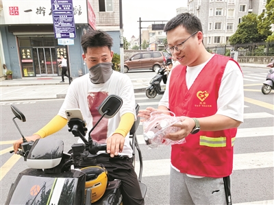 我们的服务围绕“不影响正常派单接单”展开,在骑手停留的片刻快速完成服务。在以驿站为圆心的范围内,骑士无需下车停留,我在路边服务每一位路过的骑手。以“路边三分钟”的服务,让穿行街巷的骑手感受到:在这熟悉的社区里,总有一份关怀在守候,与时间赛跑的他们,并不孤单。