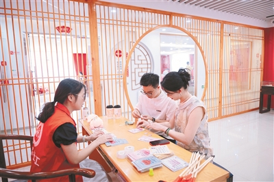 非遗手作区里,老师手把手教新人做“定情香囊”:艾草驱蚊、丁香安神,再撒上两把干桂花,绿色绸缎在指尖翻飞,很快就变成了鼓鼓囊囊的心意。