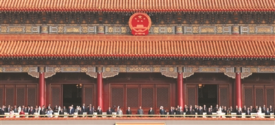 右图:9月3日,纪念中国人民抗日战争暨世界反法西斯战争胜利80周年大会在北京天安门广场隆重举行。这是中共中央总书记、国家主席、中央军委主席习近平等在天安门城楼上。 ■新华社记者 王晔 摄