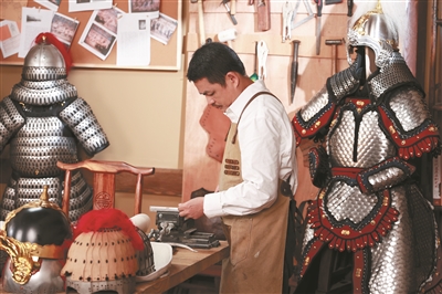 在“流浪作坊”升级为产业链完备的企业后,炼铠堂如今的年产值已近2000万元。来自周边的五金件、皮革、布料等原材料在海宁汇聚一“堂”精加工,再经匠人们巧手组装,成为一件件精美的铠甲制品,不仅畅销全国,更远销海外。