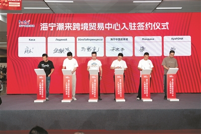 开幕式上,黄金公主、蔓丹娜、冰格、猎马仕、卡萨等企业代表与海宁中国皮革城“牵手”,签约入驻海宁潮来跨境贸易中心。作为一个集产品展示、贸易洽谈、跨境服务于一体的外贸平台,海宁潮来跨境贸易中心首批入驻商户30多家,分为外贸配套区、生产型外贸区和运营服务区,将依托产业集群优势,整合全球采购商资源、建立海外展示中心等六大服务体系,积极寻求跨境贸易的新机遇。
