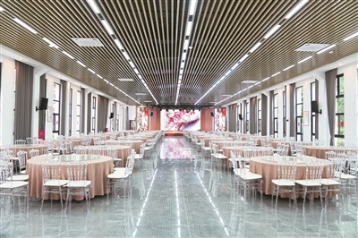 本报讯 宽敞的大厅、专业的舞台灯光系统、4K超清大屏……近日,长安镇大型村村民顾金燕正在布置婚宴场地,地点不是在酒店,而是在崭新的家宴中心。