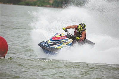 徐铁鸿参加水上摩托艇比赛。