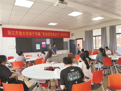 眼下,海宁本地的普通话培训班并不多,海宁学院推出的这个培训正好填补了这个空缺。以小班教学、专业内容和免学费的特点,受到了不少学员的欢迎。“普通话一直是我的短板,学好了对我的交际和工作都有好处。”2023春社会工作本科学生唐辉在参加培训后,感觉自己“来对地方了”,一堂课下来,笔记记了好几页。