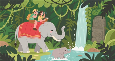 暑假里,我们一家去了云南西双版纳旅游,坐飞机需要三个半小时到达,那里街道很繁华,我们住的酒店顶上有游泳池,每天晚上我都会和哥哥、爸爸一起游泳,虽然我不会游泳,但是我也玩得十分开心。说到玩,我们这次旅行最好玩的项目就是雨林徒步,因为刺激又冒险,而且还能学到知识。