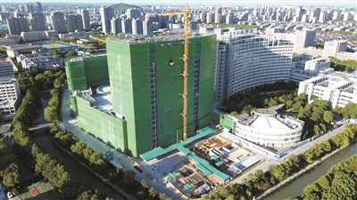 市人民医院二期主体结构封顶。