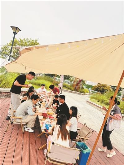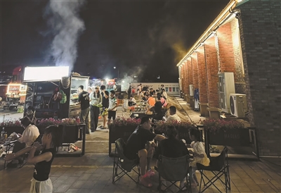 夏夜,马桥集镇五四驿站门前的夜市上,不少食客围坐一桌,喝着啤酒、品尝烧烤,在惬意的晚风中享受闲暇时光。这片烟火气满满的景象背后,离不开90后小伙吴嘉栋的付出。