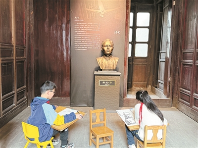沿着老街往西走,不远处便是米谷故居。这座始建于1918年的中式院落,三进三间二层格局搭配天井古树,在金秋时节丹桂飘香。故居内设有米谷生平展厅、作品展示区,二楼更按史料还原了他青少年时期的居住场景。