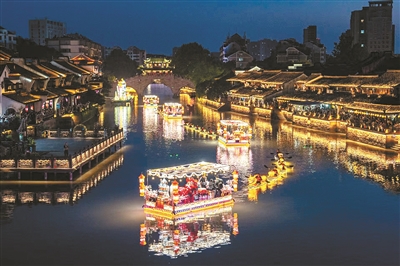 活动通过更诗意的主题市集、更创意的快闪演出、更新颖的水上迎灯、更亲民的互动表演、更潮流的氛围布置,梦幻联动诗人徐志摩关于“摩登”的百年畅想,让广大游客领略“摩”与“登”的传统与现代、诗意与活力、根源与未来。