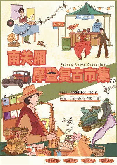 南关厢“摩登复古市集”:超40+位主理人亮相海宁,一站式打卡复古多元文化活动&生活方式,怀旧浓度100%。年轻人用花领带、帆布包盛满旧时光,在此刻撞见自己定义的“黄金时代”。