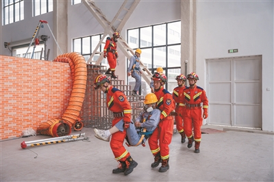 本报讯 “一名作业人员晕倒在池底,情况紧急,马上来救人”“报告指挥部,救援人员已就位,环境安全,符合救援条件,请指示”……昨日,位于斜桥镇云华路10号的冠球生物科技(浙江)有限公司内,一场高度仿真的有限空间应急救援演练正在紧张进行。