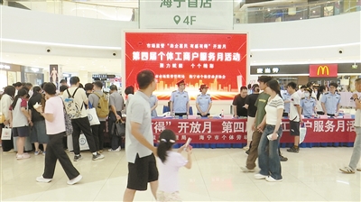 本报讯 近日,海宁银泰城迎来一场特殊的“夜市”——由市场监管、税务、金融等十余个部门联合举办的“个体工商户服务月”现场活动。这场“服务夜市”,把政策咨询从白天延伸到了夜晚,为平日忙碌的个体工商户和小微企业主提供了面对面解决问题的便利平台。