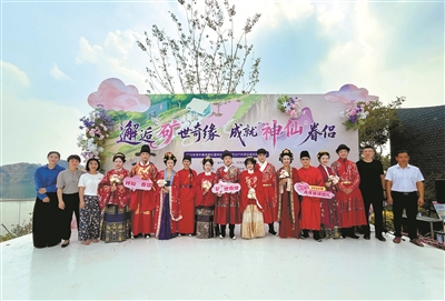 本报讯 金秋送爽,湖光潋滟。9月27日上午,“邂逅‘矿’世奇缘 成就‘神仙’眷侣——2025年海宁市青年集体婚礼暨神仙湖结婚登记户外颁证基地揭牌仪式”在风景如画的袁花镇神仙湖生态公园浪漫上演。6对新人在亲友及嘉宾的见证下,以山水为媒,喜结连理,共同开启了幸福的人生新篇章。