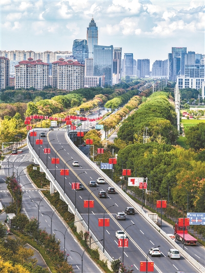 有人说海宁是一座被潮声唤醒的城市它没有喧哗的声势却让乾隆四次驻跸、徐志摩频频回眸虽地处长三角腹地却始终保持着一份从容不迫的气度也正是这份厚重让海宁在岁月中积淀出独属于自己的光芒——不张扬,却自有千钧之力总要来一次海宁观潮、读城、品味、感怀或许你会发现这座城市早已把最壮阔的风景藏进最日常的烟火里今天是国庆节,在潮城大街小巷,五星红旗迎风飘扬,处处洋溢着热烈喜庆的节日氛围。■记者 杨立超 摄