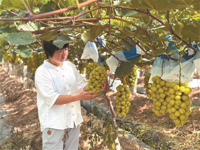 如今,她还推动村里建立“共富工坊”,搭建劳务平台,统一销售模式,使葡萄种植户亩产值均超6万元,年增收高达30万元。