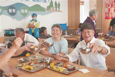 老年人在邻里食堂就餐。