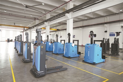 本报讯 蓝光闪烁,一台宽度不足一米的智能搬运机器人沿着激光指示的路径自如行进。它头顶摄像头,身嵌电子屏,引得参观者纷纷举起手机拍摄记录,这是近日出现在浙江昱透科技有限公司(以下简称昱透科技)新厂区的一幕。