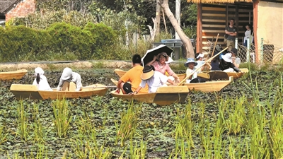 近年来,丁桥镇万新村针对亲子家庭推出了采菱、挖藕等一系列农耕体验活动,两大一小的套票定价98元。特色体验项目,给村里带来了持续增长的客流。