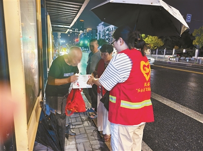 一天晚上,我和同事们一起到走上街头开展巡查,马路边,一个熟悉的身影映入我的眼帘——80多岁的李爷爷。他是个文学爱好者,常来社区找我帮忙打印资料、寄信件。一来二去,我们便熟络了。