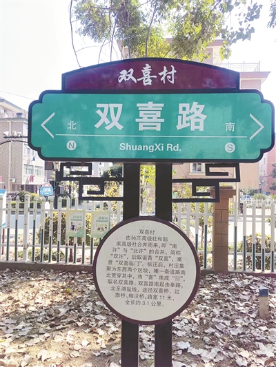 双喜村一向重视地名文化。早在上世纪五十年代,双喜村由孙家庄和郜家高级社合并而成,因为主要源于“南许”与“北许”,简称双许,后取谐音双喜,寓意双喜临门。村庄集聚为东西两个区块后,一条大道南北贯穿其中,将“喜”串联成“囍”,成为双重含义的双喜路。而小区里面的主干道路,则与征迁前村民所在的自然村相关联,给新的家园增添了厚重的文化底蕴。