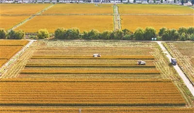 晚稻丰收,呈现独特农田盛景。■记者 杨立超 摄