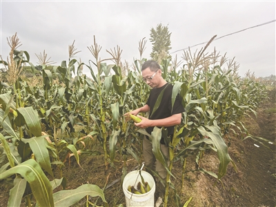 记者看到,在这片翠绿的玉米田里,一行行玉米整齐排列,腰杆粗壮,颗粒饱满,亩产可达1500斤。“我们先把羊粪施撒下去,犁耕后进入土壤,然后种植玉米,玉米自然吸收有机肥,就能长得粗壮、口感也更好。”种植大户顾天文说,这种循环种养模式,不仅节省了成本,改善了玉米的口感,也让产量更加可观。