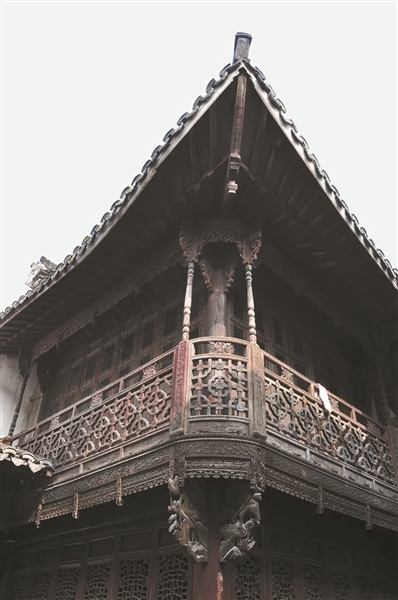 步入第二进,木构建筑的精巧令人叹为观止。梁枋、围廊、槅扇门以及牛腿等细节之处,雕刻极为精美,且保存状况相当完好。尤为引人注目的是那20扇槅扇门,每一面都精心浮雕着各异的人物故事,题材丰富多样,刀法纯熟细腻,人物面部表情栩栩如生。而那5个牛腿雕刻,分别以仙鹤、金鸡、凤凰、孔雀、虬龙为题材,采用圆雕技法,形态各异,生动灵活,有的曲项回眸,似在低语;有的倒转扑腾,宛如欲飞。