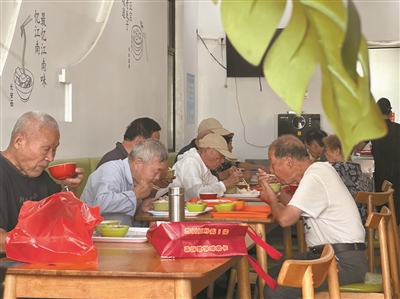 老年人在老年食堂就餐。