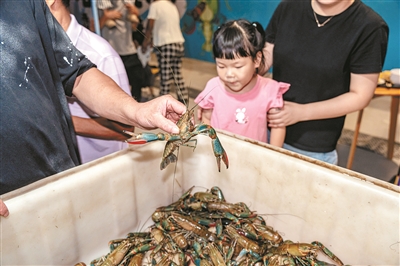 游客挑选、品尝澳龙。
