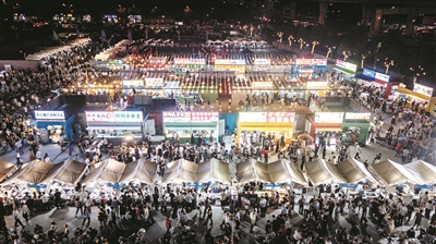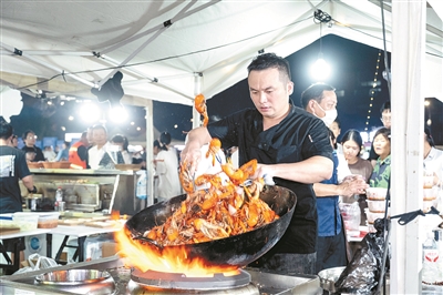 坐上杭海城铁一路驰骋到斜桥,在站台上俯瞰,夜幕下的洛溪夜市星星点点、人流如织。10月17日,斜桥镇第四届“澳龙小镇”龙虾推广活动在此开幕,再次让夜市“火爆出圈”,每天都有上万名游客循着香味而来,参与为期三天的“澳龙盛宴”。
